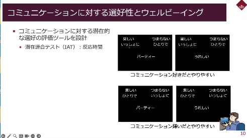 ▲Picture 7 ● The latent association test (IAT), which enables us to understand preference and wellbeing for communication.▲