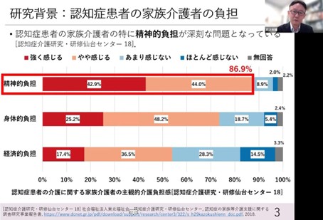 Under these circumstances, one of the major problems is the burden on family caregivers of dementia patients. In fact, many family caregivers feel a mental burden, with a survey showing that as many as 86.9% of family caregivers feel a burden. (▲Picture 4▲)
