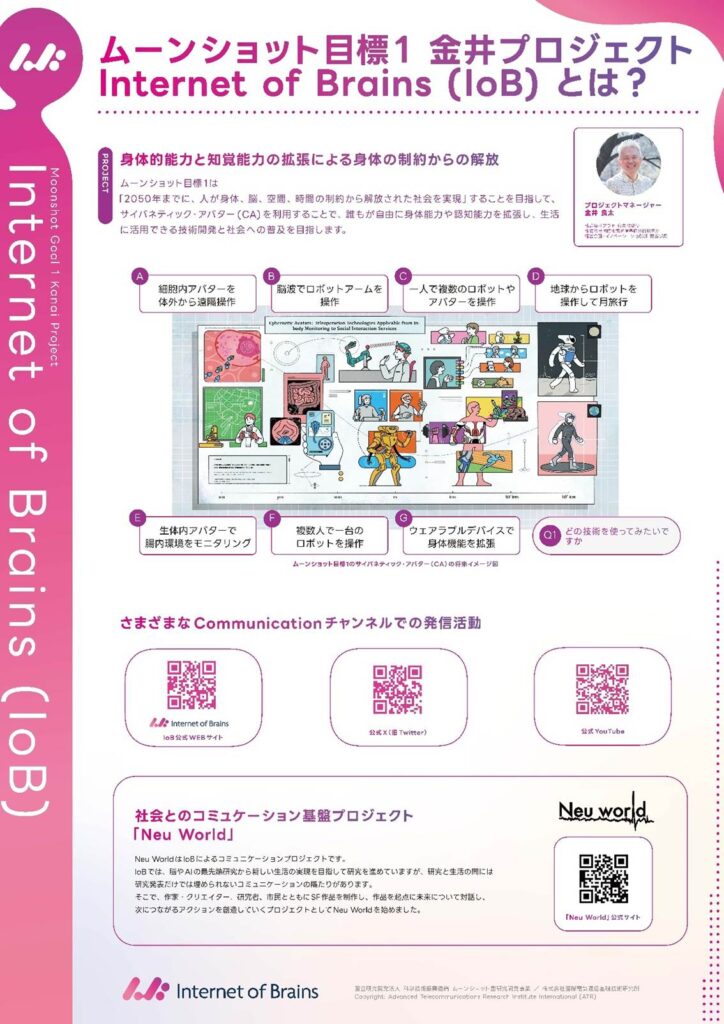 宮田氏:「私たちが取り組んでいる『Neu World』とは、『ムーンショット目標1金井プロジェクトInternet of Brains』(以下、IoB)の研究内容や研究で目指している未来のビジョン、研究成果を社会でどのように活用していきたいかといったことを、多くの人たちと一緒にコミュニケーションを取りながら考えていくプロジェクトです。その取り組みを紹介するため、今回、『みんなの脳世界』では、合計4枚のポスターをデジタルで展示しました。最初のポスターではIoBの取り組みを紹介しています。(▲写真4▲)