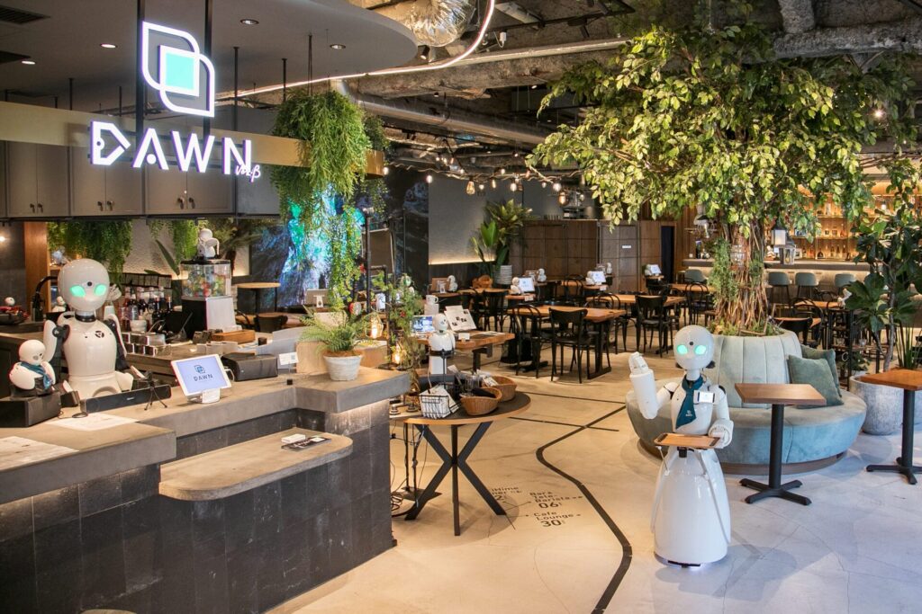 オリィ氏:「オリィ研究所では『OriHime』という遠隔操作で動くロボットを作っています。これは、車椅子の方やALSでほぼ体を動かすことができない方、精神障がいのある方など何らかの事情で家から出られない方々などが、あたかも自分の分身のように遠隔操作できるロボットです。このロボットを使うことで、外出が難しい方でも、外で働くことができるのではないかと考え、実証実験にも取り組んでいます。『分身ロボットカフェ』を新日本橋駅、小伝馬町駅や神田駅にも近い場所で運営しています。約4年前からスタートし、今では年間6万人ものお客様に来ていただけるようになりました。ここで働くロボットはAIではなく、人が遠隔で操作していることがポイントです。(▲写真3▲)