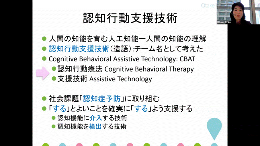 石戸:大武さんは、『脳が長持ちする会話』で認知症にならない社会の実現に取り組まれています。最近の理研での研究内容、今後の研究の方向性などについてお話をお聞かせください。