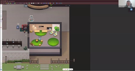 間杉氏:「私は中央にいるサメのアバターに扮しており、子どもたちからは『サメ』と呼ばれています。EuLaの一日は、オープンなスペースでのホームルームから始まります。寝起きは頭が眠っているので、皆でミニゲームをして脳を活性化させてから一日のカリキュラムに移ります。