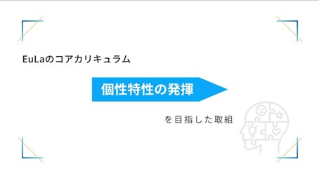 カリキュラムについて説明します。EuLaで一番大切にしているのが『個性特性の発揮』です。(▲写真8▲)
