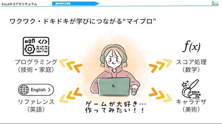 まとめると生徒が特性を発揮できる『マイプロ』が中心にあり、それを支えるための特別講座や教科学習をメタバース空間で行っているのがEuLa通信制中等部の活動です」。