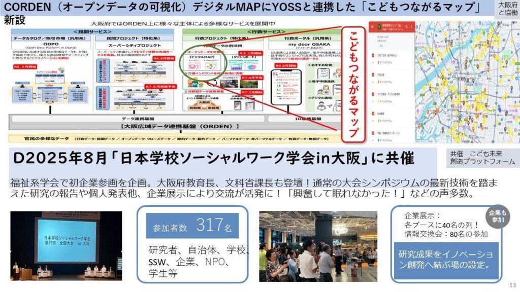 山野氏:「その他の活動についても紹介します。大阪府ではスマートシティの一環でデジタルマップを作っていますが、そこに『こどもつながるマップ』を作っていただきました。