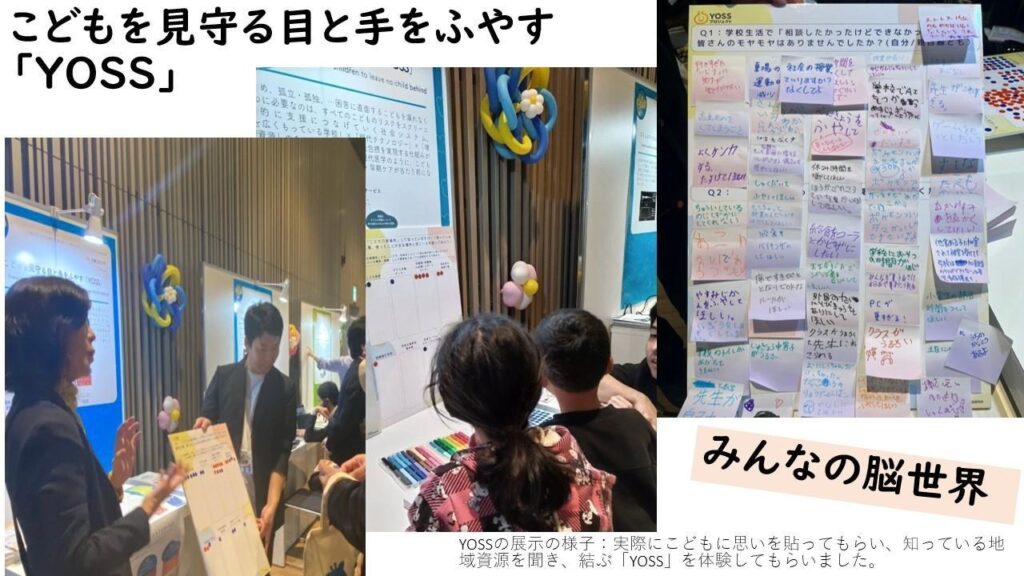山野氏:「子どもを見守る目と手を増やす『YOSS(Youngsters’ Obstacle Screening System)』を出展しました。これは『すべての子どもたちを取り残すことのない世界』『保護者や子どもが満足できる生活』を目指し、必要なケアを提供することを目的としたものです。